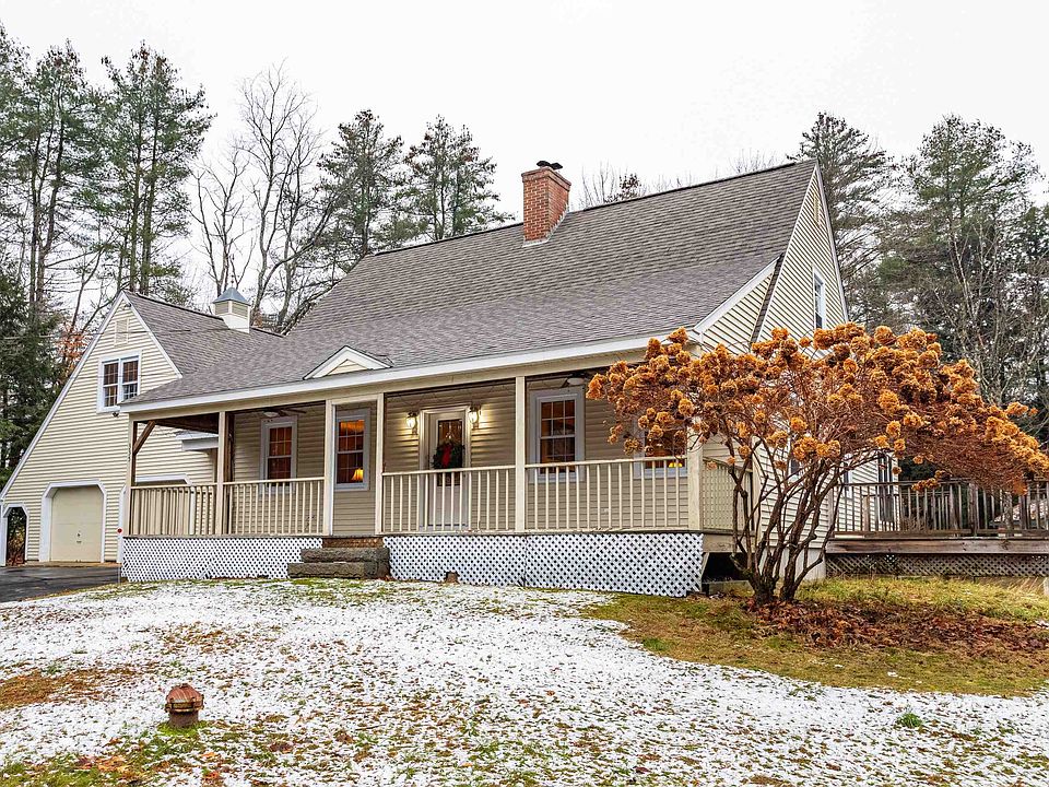 Welcome to this charming oversized 4-bedroom, 2-bathroom Cape-style home in the highly desirable town of Bow. The residence boasts a brand-new roof, ensuring both curb appeal and long-term durability. The inviting farmer's porch offers a perfect spot to enjoy summer evenings. Inside, a thoughtfully designed floor plan seamlessly blends classic charm with modern conveniences. The first floor features a comfortable living room for gatherings and relaxation, along with a family room for entertainment. A main-level bedroom adds practicality and versatility, catering to various living arrangements or serving as a convenient home office with an adjacent full bath. The kitchen, with ample counter space, looks over a spacious dining area. From the family room, step onto the back deck, extending living space and providing a perfect spot for outdoor gatherings overlooking the private yard. Ascending the staircase reveals three additional bedrooms, along with an extra room for additional office or flex space, and a 3/4 bath. The basement provides ample room for storage along with the sizeable two-car garage with storage alongside. First floor laundry! The private yard offers a serene retreat for outdoor activities and gardening. This home embodies a lifestyle with a perfect blend of rural charm, modern comfort, and close proximity to Routes 89 and 93. Schedule your appointment now to explore and experience the charm of this delightful home in person. Cameras on premises.