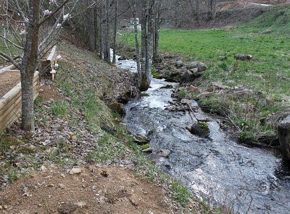 Home is situated on 4.76 acres and has beautiful wide rushing creek. The land has additional building sites and an area for gardening already in place. Large master bath and spacious floor plan.
