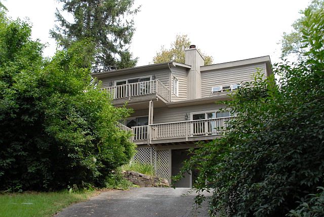 Wonderful location in Mayview with a very private setting and great outdoor spaces including a screened in porch and multiple decks. The main level has a large Master Suite, Kitchen and Dining area, Living Room, Laundry and Half Bath. Two more bedrooms and a full bath upstairs and another family room on the lower level with full bath and additional storage areas. There is ample parking in front of the house (Pinnacle Drive) and a one car garage accessible from Meadow Lane. Seller has recently