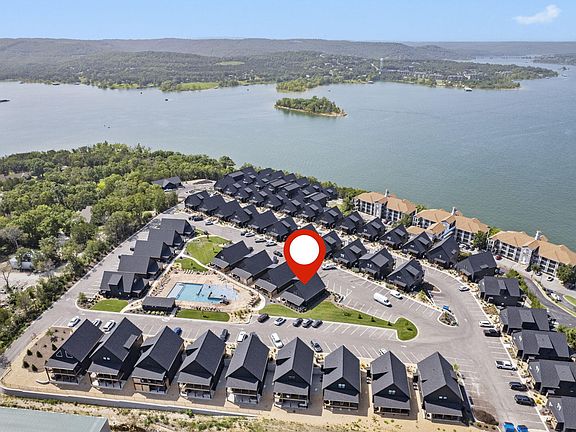 Stunning turn-key nightly rental on Table Rock Lake! This 4 bed/4bath condo sits in Rocky Shores and provides direct walk-out access to the community pool. Walking in from the covered front porch, you will love the main living area with electric fireplace and open floor plan to the kitchen/dining area. The kitchen features granite counters, stainless appliances (all included), a center island w/barstool seating, and attached dining area. On the main floor are two bedrooms, each with their own en-suite. Upstairs, discover two more bedrooms, large enough to accommodate 2 queen sized beds, and 2 bathrooms. The 2nd floor also occupies an included stackable washer/dryer. Enjoy a covered back patio with hot tub and sidewalk straight to the pool. This fully furnished lodge creates the perfect vacation home or nightly rental investment property! Less than 20 minutes to Branson Landing, State Park Marina, and so much more! COA includes outdoor + indoor pool, water, sewer, trash, and common area maintenance.