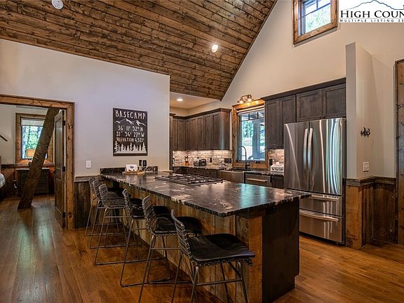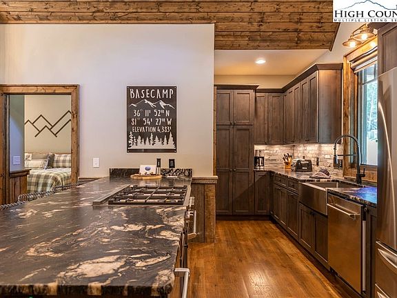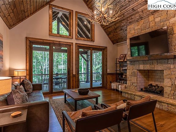 Introducing "Basecamp" the newest luxury mountain retreat located in the highly desired The Lodges at Eagles Nest. This charming two bedroom, two and a half bathroom home is found midway through the mountain situated along a moving creek offering seclusion away from the main roads. The open floor plan combines a flowing kitchen, living and dining area. You are greeted with a gorgeous floor to ceiling stone fireplace, large glass sliders and windows, vaulted ceilings, and wood floors throughout. Two ensuites are on either side of the home for peace and quiet. Each has a king bed, a smart TV, and a luxurious, full bath. One features a walk in tiled shower, the other a tiled tub/shower combo. You will find that one of the ensuites also features an additional sleeping loft with two twin beds. the kitchen is a half bath and separate laundry center. On the back deck, you'll enjoy a serene, wooded yard with a fire pit. Located directly between Great Camp and the North Pavilion area of Eagles Nest, this home is in close proximity to the most popular amenities in the community, Camp Eagles Nest. The connector to Beech Mountain is around the corner and you can be on the slopes in less than ten minutes! Eagles Nest offers great hiking trails that can either be hiked by foot or explored by ATV... some leading to beautiful waterfalls! There’s something for everyone. Currently rented through Blue Ridge Mountain rentals this home does come with an impressive rental history which can be provided upon request. Don't miss this opportunity to become part of the fastest growing community in the high country!