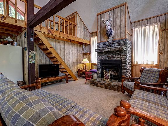 A red rustic hideaway awaits you in this FURNISHED 2 bedroom 1-1/2 bath home that sits on 2 lots totaling over 4 acres. This property borders thousands of acres of US Forest Service for your ultimate privacy. Your Great Room features a wall of large windows to allow for lots of natural light, a stacked stone gas fireplace and rough sawn wood beams for a rustic feel. Master bed and full bath is on the main level and guest bedroom and half bath is located up the stairs in your loft area. Year round mountain view can be seen from this property that makes it a truly must see!