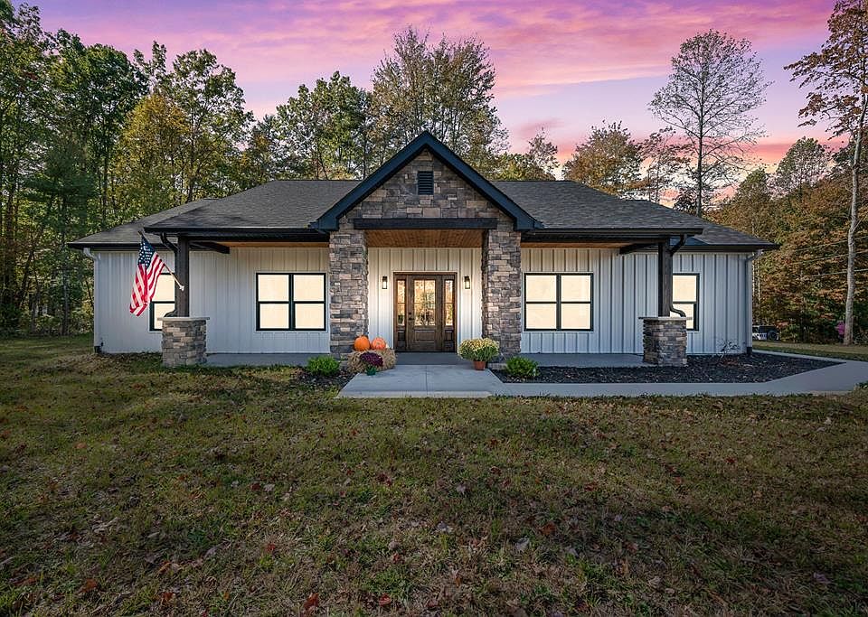 Mennonite built luxury barndominium-style home in peaceful Cumberland Cove! This 3-bedroom, 2.5-bath home with a flexible bonus room offers tall ceilings, custom trim, rustic beams, and an open layout, and a gas fireplace. The kitchen features a massive granite island, stainless appliances, soft-close cabinets, and a closet or pantry. The primary suite includes a walk-in tile shower, double sinks, and custom shelving. Enjoy a covered front porch, concrete drive, 2-car garage with walk-out door, and evergreens planted for privacy. Built in 2025 with 26 construction, gas HVAC, and includes a 1-year builder's warranty for peace of mind. Located near Monterey, Crossville, and Cookeville—about 90 miles to Knoxville or Nashville. Cumberland Cove offers hiking trails, waterfalls, and beautiful bluff views, with nearby attractions including Muddy Pond Mennonite Community, Big South Fork, Fall Creek Falls, Dale Hollow Lake, and Center Hill Lake +more for endless outdoor adventures.