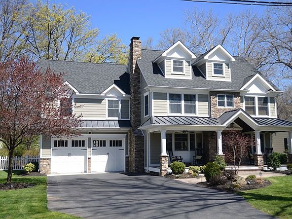 QUALITY WORKMANSHIP is evident throughout this recently remodeled stunning 5 bdr., 2 1/2 bath home. Beautiful, peaceful tree lined cul-de-sac. Hardy Plank and Stone. Two-car garage. Open floor plan with lots of natural light is perfect for entertaining. Spacious bright family room has vaulted ceiling, skylights, and lots of windows. Living room with spectacular stone gas fireplace. Dining room. Designer kitchen with custom cabinets, granite countertops, large island, stainless steel appliances, two pantries, additional beverage refrigerator and slider out to large outdoor patio. Master Bedroom has vaulted ceiling and his/her walk in closets. Master bathroom equipped with double vanity and custom stall shower. Spacious bedrooms with ample closet space.Full staircase to third floor with fifth bedroom and attic. Beautiful hardwood and tile throughout. Upgraded mahogany doors. Amazing outdoor entertaining space boasts three seating areas with built-in fire pit. Excellent schools and great access to trains and bus for commuters. This home is a MUST SEE!