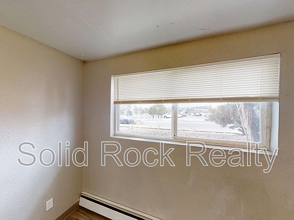 A lower-level unit in a 4-plex building with 2 bedrooms, 1 bathroom, 760 s.f. An updated eat-in kitchen with quality cabinets and SS appliances; a spacious living room and two good-sized bedrooms. A shared coin-operated laundry in the building. Unassigned parking spaces and plenty of on-street parking. Located by S. Academy and Airport Rd; short driving distance to the airport and Peterson AFB; easy access to S. Academy, I-25, and Hwy 24. Visit solidrockre. All applicants should complete a Pet, No Pet, or Animal Profile. - One small dog is allowed; up to 30 lb ((restrictions, additional terms/Pet deposit/Pet rent apply) - No Smoking. No Marijuana. No Drug use. - 12 Month Minimum Lease Term - Tenant pays individual Electric bill, plus a portion of shared house meters for Gas, Water/wastewater, and Garbage removal. - Central A/C- None Credit Screening: 600+ Preferred Minimum 575-599 = Double Security Deposit Required; Conditions apply Income / Employment: Gross combined monthly source of income of all applicants must be 2 times the monthly rent (3 times the monthly rent requires one month security deposit and 2 times the monthly rent requires a double security deposit). Verification of income is required and no applications will be accepted or considered without this information. Landlord Reference(s): - Positive reference from current and/or previous Landlord(s) - No Evictions in the past 7 years Background Screening: - No violent crimes in the last 5 years - All other crimes evaluated on a case-by-case basis in the last 5 years - No criminal charges relating to homicide or methamphetamines from any point in time. TENANT DISCLOSURE: 1. The prospective tenant has the right to provide to the Landlord a portable tenant screening report, as defined in section 38-12-902 (2.5), Colorado Revised Statutes; AND 2. If the prospective tenant provides the Landlord with a portable tenant screening report, the Landlord is prohibited from: - Charging the prospective tenant a rental application fee; or - Charging the prospective tenant a fee for the Landlord to access or use the portable tenant screening report. ** DISCLAIMER: We do our best to market our properties online as accurately as possible. However, it is possible some of the images will have inaccuracies or will appear slightly different in person than in our virtual tours. For this reason, we strongly recommend all applicants view properties in person before signing a lease so there is full awareness on the actual condition of the property. **