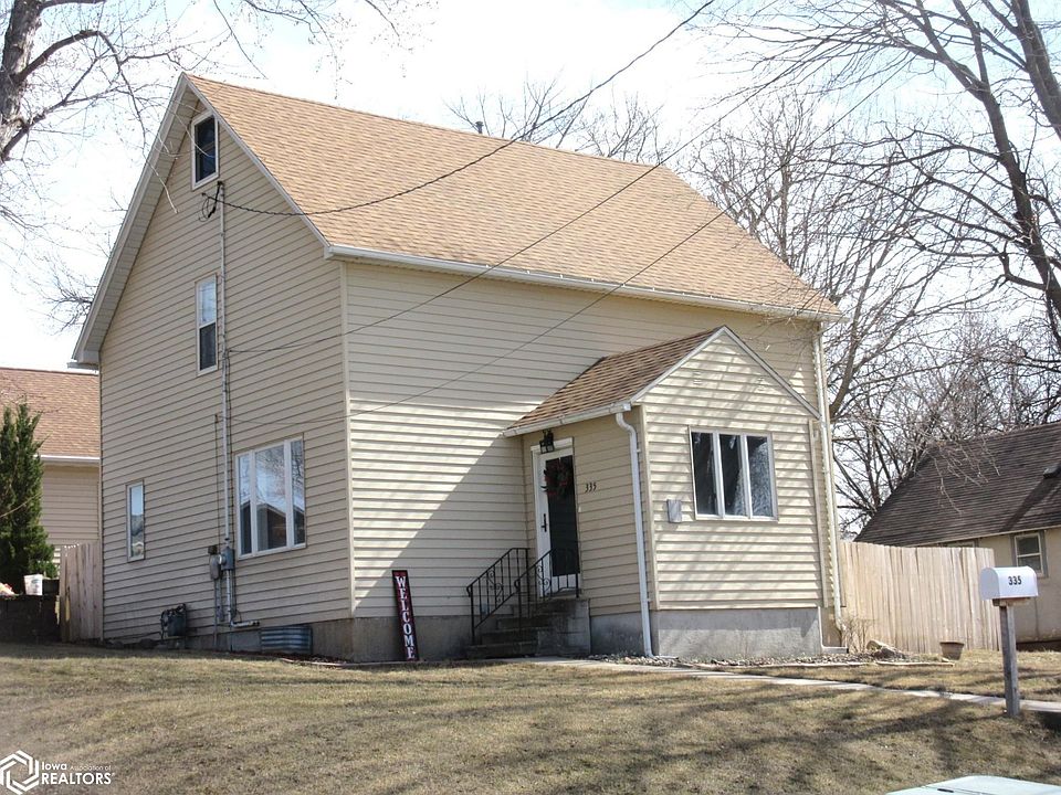 This two story home is ready for you! Quiet neighborhood, close to Forest City Schools, Waldorf University, YMCA, Forest City Aquatics Center, and Bowman Fine Arts Center. It offers 3 bedrooms, 1 1/2 Bath plus shower/sink in lower level. The front entry has n Living room has an electric fireplace (built in) on a stylish "ship lap" wall. A spacious dining room has natural light for family gatherings. Kitchen cabinets are painted w/ample storage. Steps away is a floor to ceiling pantry with space for provisions for the month! Patio doors in the kitchen open to the concrete patio with a Paver border. There is privacy fence and a corner fire pit w/steps into the garage. There are three bedrooms upstairs. The Master has a 1/2 bath and the closet has an organizer. The other two bedrooms have nice sized closets also. The hall has an open closet for additional storage or could be a nice spot for a desk. The 3rd level is finished. Accessible by a ladder. Quiet spot for a "get away", "Man Cave" or great storage. The basement of this home has good "workshop" space, Shower and sink, storage shelves, "extra room", new FA furnace and C/A in 2022. Roof was re-shingled in 2022 also. Big item expenses have been done! The oversized garage (24 X 30) is detached, just steps away from the home with an alley access. It has full storage above the garage for whatever needs to be stored! This is a MUST SEE! tucked away. Good clean storage w/ ladder access.