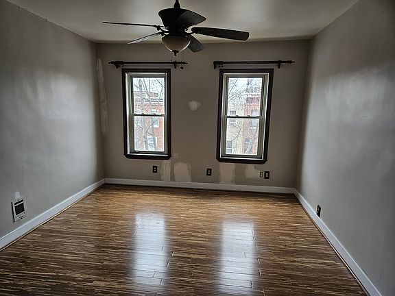 Freshly painted and restored in a nice neighborhood. Close to Patterson Park and Johns Hopkins Hospital. Open floor plan with large rooms and large appliances. Hardwood and tile floors throughout. Laundry on the main floor. Full finished basement and detached garage for storage (no parking). Plenty of street parking. Tours of the property will be scheduled after applications have been submitted and reviewed. Renter responsible for gas, electric and water. No smoking allowed. Street parking only. Detached garage is too small for a car.
