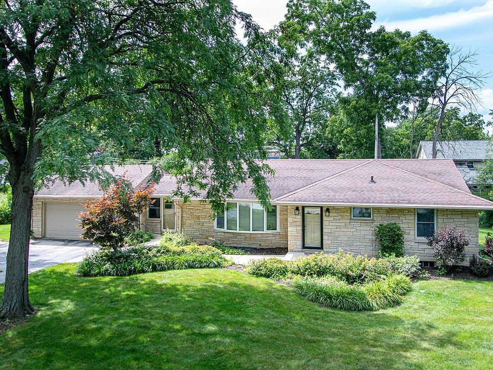 Stone ranch home in desirable subdivision with ELMBROOK schools! Close (but not too close) to Brookfield Square and Bluemound Rd with easy access to Milwaukee and Waukesha. Spacious living room with natural fireplace, dining room with built-ins, kitchen with bay window overlooking the backyard. 3 bedrooms and 1 1/2 baths. Breezeway/3 season porch offers extra storage and provides access to the attached garage. Lower level features a rec room along with other spaces to do with as you choose. Private setting on the 1/3+ acre lot - the land next door is owned by the neighbor and hasn't been built on. The interior was just professionally painted and the house is move-in ready.