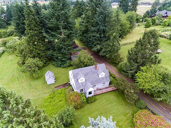 Vintage farmhouse features 3.78 acres in a peaceful park like setting with a view of the coastal mountain range. Enjoy the picturesque yard access to nature's wildlife leading down a forested ravine that backs to Oswego Hills Winery. Property is located on a dead end road. 2,448 sq ft home with 2 bedroom, 2 bath home with lots of potential to grow with a basement and attic. Do not enter outbuildings. Open house 6/17 and 6/18 from 11-1.