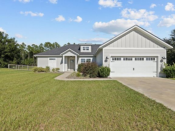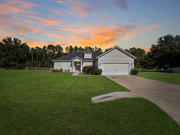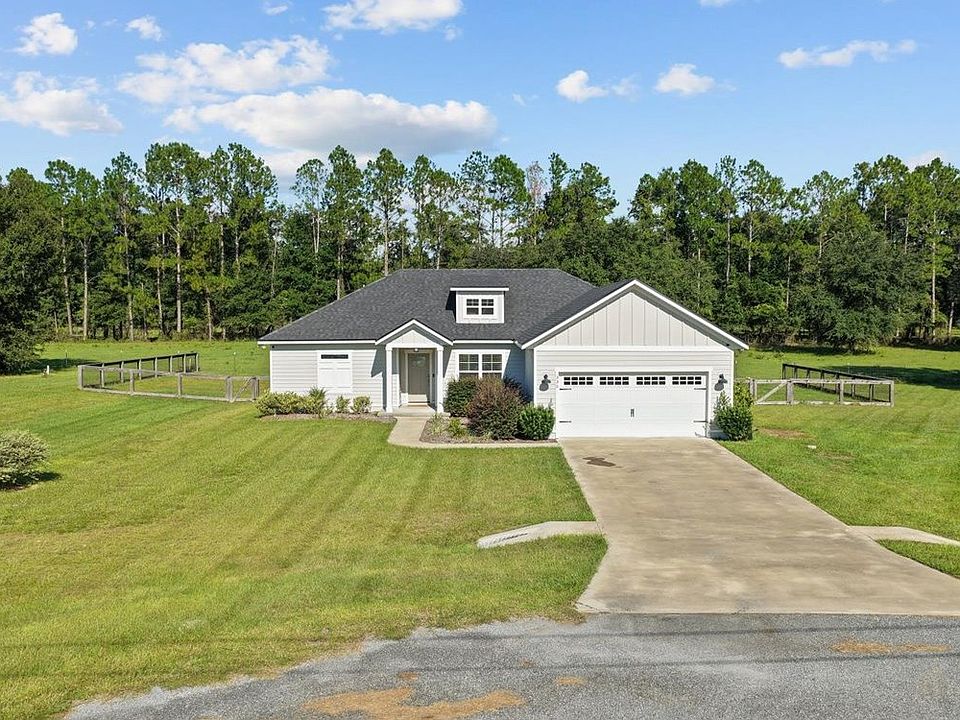 Welcome to this 2019-built home, perfectly situated at the end of a quiet cul-de-sac, located in Cannon Creek Place Subd.! This stunning 4-bed, 2-bath home sits on a 0.52 acre lot in a family-friendly neighborhood w/no HOA! Sitting at nearly 1,800sqft, this home provides room for endless possibilities - use the fourth bedroom as an office, reading nook, or home gym! As you step inside you will find a spacious & open floorplan, an oversized kitchen island & seating, & high end LVP flooring throughout. The open-concept design & split floor plan offer a great flow, while the attached two-car garage adds extra functionality. The kitchen also features quartz countertops, quality all-wood cabinetry, & stainless steel appliances. Two full baths w/tile floors & showers & quartz counters! The master bath has his & hers walk-in closets, a private toilet room, dual vanity sinks, & a tiled walk-in shower! A few other bonuses include upgraded fans throughout, craftsman trim that shows the builders true attention to detail, & decorative lighting that warms up the space perfectly! This home has a fenced backyard w/outdoor hanging lights, two covered porches, & a relaxing pasture view where you can sit & watch the sunrise each morning! This home offers easy access to Lake City & I-75 for commuting. Columbia County is known for its beautiful freshwater springs & lakes, a historic downtown area where residents can enjoy local shopping, dining, & community events, & two premiere golf courses.