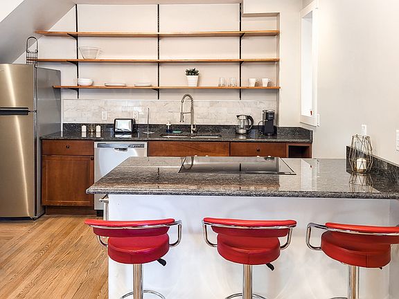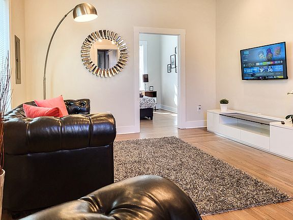 Enjoy a stylish experience at this centrally-located place right by Wooster Square! Very spacious 2-bedroom apartment with all the amenities needed, including washer/dryer, towels/linens, soaps and lotions, Keurig coffee machine, etc. Private parking is available on-property. There is also parking on-street. This 2-bedroom 1-bathroom apartment is a very spacious, comfortable and stylish listing. It features an open floorplan living room and kitchen, with smart stove/oven capabilities accessible via Bluetooth. The living room has 2 couches and a Smart TV setup with streaming sites. The bathroom has a sink, shower (no bathtub) and laundry (free washer and dryer), and each bedroom has a queen bed with desks for remote working or studying. The master bedroom has a twin-size rollaway bed in the closet. All utilities are included in the monthly payment (electricity, gas, water, sewage and internet), as well as all amenities. Soaps, lotions, coffees, paper towels and toilet paper that is there when the tenant arrives are all start-up amenities (i.e. tenant is required to purchase them once they have run out).