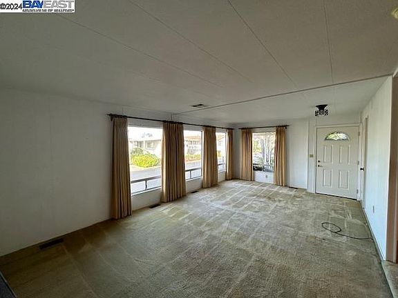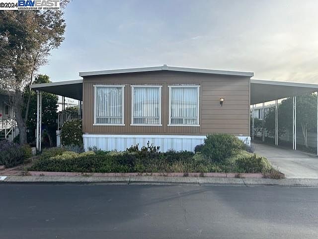 Mobile home in Mission Bay with: 2 bedrooms; 2 full baths; separate living and family rooms; family room with electric fireplace; kitchen with built in appliances; indoor laundry room with washer and dryer included; dining area with built in hutch; primary bedroom with private bath and two closets; porch with open and enclosed screen area; storage shed; home near community clubhouse, guest parking, pool and spa.