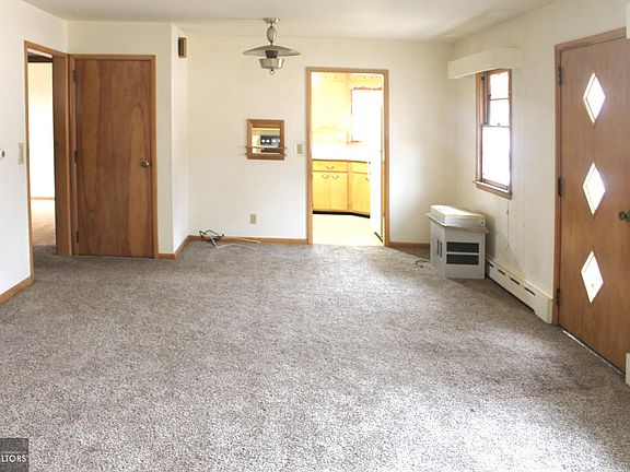 This two BR, 2 B home is located just several blocks from the library, Post Office, & Forest City's main street. The exterior of the house offers asphalt shingles (2009?) & vinyl siding. The front door opens into a spacious LR, w/room for a dining set at one end, if wanted. A coat closet is also available in the LR. The eat-in kitchen features lighter-stained cabinets, a corner sink (w/ windows!), & an area for a dining set. All kitchen appliances will be included with the sale. A bath, w/a 6'6" vanity & a shower, separates the two main level BRs. A hall linen closet provides additional storage for sheets, towels & other supplies. The back (east) side of the basement includes a FR/Rec Room which has a window for natural light AND a door that opens to a concrete patio. A lower bonus room, also w/an east-facing window, could be made into a 3rd BR. There's a shower in the basement, as well as plumbing for a toilet. The balance of the lower level offers ample space for storage & a shop.