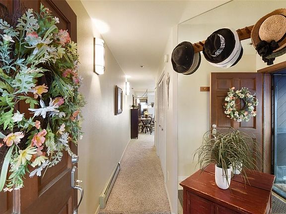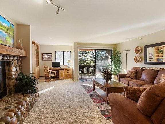 Beautiful Burgundy Hill condo on first floor, single level, one bedroom with two full bathrooms + den/alcove. The versatile Murphy Bed area doubles as a flexible office space. The perfect condo with remodeled kitchen with granite counters, stainless appliances and stone fireplace in living room. Nice deck with views of the trees and mountains and amazing sunsets. No stairs with elevator access to covered parking area. Easy to show! Close to all community amenities. Offered furnished.