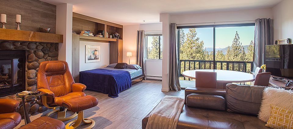 Beautifully updated, modern lakeview Condo located in Incline Village, NV at Lake Tahoe. This condo offers single-level living on the 2nd floor in the 3rd building of the desirable Burgundy Hill Complex, located less than a mile from Diamond Peak Ski Area and 2 miles from Incline Beach. Completely Repainted with new baseboards throughout = Quality Low VOC Paint (Light and Bright!!). High-end Italian, wood grain porcelain tile flooring throughout living spaces makes for an easy clean up and a modern mountain feel. Living area has a river rock gas fireplace, updated window coverings, and an open floor plan. Kitchen features all stainless steel appliances, under mount sink, granite counters, new lighting, new hardware, and refurbished cabinets. Built-in modern cabinetry and murphy bed by California Closets allow accommodations for up to 6 people. Peaceful setting in the tree tops looking out to Lake Tahoe. Beautiful lake, mountain and tree views. Building three offers more privacy and the best lake views and sunshine. The HOA provides year-round maintenance of complex including snow removal and landscaping. Fiscally responsible condo association insures proper building upkeep and maintenance. Covered parking garage and bike storage with an elevator to the second floor. Open forested common area with horseshoe pits. One of the few quiet, private and secure low elevation locations. Easy accessibility (bus pickup on Ski Way) to Diamond Peak for winter skiing, summer hiking, Incline Village shuttle to beach and downtown during summer. Short walk to Big Water Grill Restaurant Short drive (or walk) to Lake, Private Beaches, Hyatt and Casino, Tennis Courts, Recreation Center, Disc Golf and Raley's Shopping Center (groceries, etc.). HOA fee covers heating, gas, water, trash, snow removal, grounds. Property is part of Incline Village General Improvement District and has access to all community amenities.