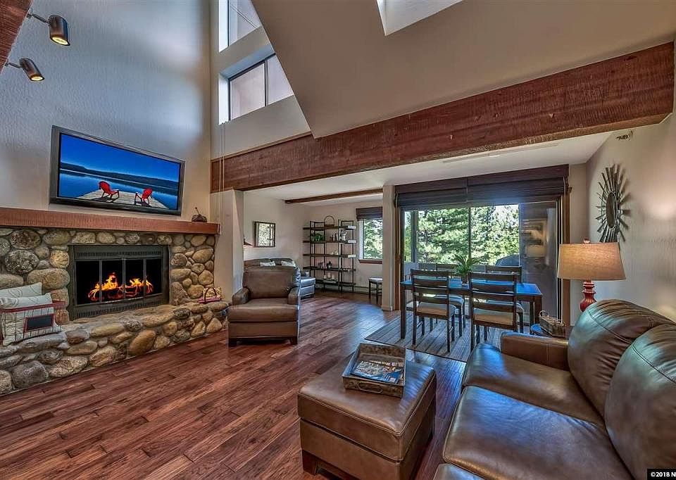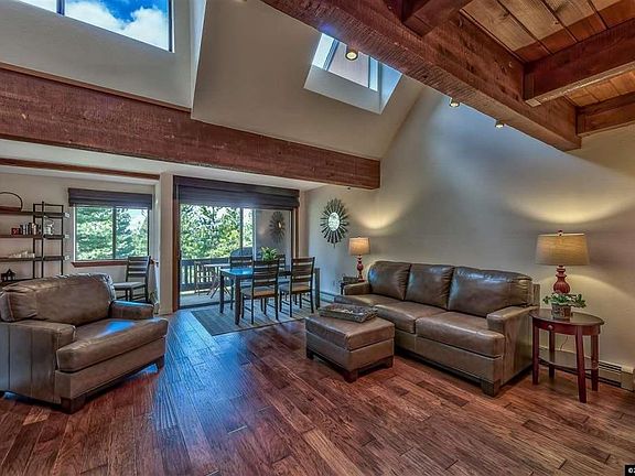 Enjoy this beautifully remodeled penthouse in Burgundy Hill with views of the Lake Tahoe mountains, surrounded by the trees. Perfect for single-level living. Covered parking garage with elevator to your front door. Master bedroom on entry level. Open loft can be used as second bedroom or home office. New flooring throughout. Remodeled bathrooms and kitchen with new cabinets, counters & appliances. Cathedral ceilings brightens the space. Living room features a river rock fireplace with gas log starter.