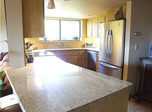 Beautifully remodeled end unit penthouse w/ loft (loft is 3rd bedroom), large storage space and a wrap around deck with lake and mountain views. Highest quality upgrades, fixtures & finishes throughout. Complex has covered parking & an elevator.
