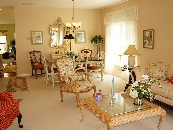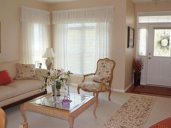 Village Grande @ English Mill, 55+ Community! Gorgeous Coventry model beautifully maintained! Backs up to the woods for maximum privacy, patio with retractable awning for relaxation! Eat-in kitchen w/bay window in dining area, double pantry, recessed lighting, family room with gas fireplace, living room/dining room. Master suite with high tray ceilings & master bath, his & her walk-ins & double sink vanity. 2nd bedroom is comfortable size. Lovely home with excellent amenities & clubhouse!