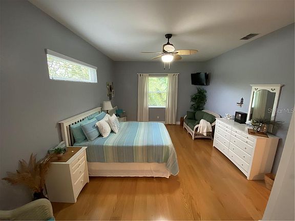 Gorgeous immaculate executive estate, with clean contemporary style, custom built 3 bedroom 3 full bath concrete block home. Your double door entrance takes you into a surprising open air foyer with the main living quarters on the left and guest quarters on the right; with both over looking the tranquil screen enclosed heated pool area with an electric awning. The home has great open site lines central to the kitchen. High ceilings, New windows, a/c replaced within last 5 years wood floors, ceramic tiles in the bathrooms. There are lots of storage closets, pantry closets, inside laundry room with a closet, spacious guest bedrooms. The en-suite guest bedroom is like stepping inside a luxurious resort complete with a full size bathroom, soaking tub, tiled shower and double vanities. The kitchen cabinets are top grade with extra glass front doors, granite counter tops, new Black Stainless Steel appliances. The owners purchased half a lot to the west for more yard space and a second permitted utility shed and an attached carport. NO HOA FEES OR RESTRICTIONS! The property is located high on a hill area with views of Clinch Lake from the font yard. In town, it is centrally located in an established neighborhood, located very near to the local schools, downtown shopping and businesses. Within 20 minutes north and south you can have a larger super stores, pharmacies and restaurants. Within a hour you can be at several them parks and other area attractions and malls.