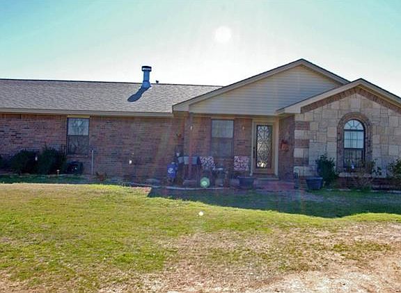 Country Living at its finest. Beautiful custom built 3 bed 2 bath home on 10 acres with beautiful stained concrete floors, l Large master bedroom and closet is a 10 X 10 safe room and jetted tub in master bath. Kitchen has gas cooktop and built in electric oven and microwave, refrigerator stays. The gas cooktop and oven are plumbed for both gas and electric. Feed Barn, bunk house, loafing shed and dog run. Back part of land great for hunting.