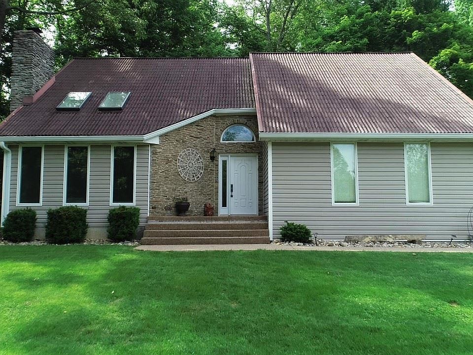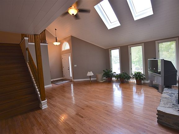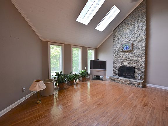 WELCOME HOME to this ONE OF A KIND BEAUTY situated on nearly an acre of privacy, in the well sought after subdivision of THE WOODS. This HOME will get your ATTENTION because Pride in Ownership is evident throughout! Wait till you walk into this HOME and see all the natural light that comes from the skylights and while you're admiring that look up at the Cathedral,white wood ceilings and crown molding. Admire the stone fireplace & beautifully maintained hardwood floors. But don't stop there... walk down the hall to the master suite with access to the back patio-don't forget to take a look at the updated master bathroom before peeking out the door to enjoy the privacy of your backyard & patio w/extended patio, covered area & built in gas grill. OR Enjoy the finished space in the basement w/ gas wall unit for those chilly winter days/nights. If you're worried about storage areas- DON'T- got it covered in the HUGE storage closet on the second floor between the bedrooms, the basement storage area and the Shed! Call TODAY to schedule a Tour of YOUR NEW HOME!