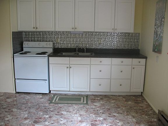 Newly painted three bedroom and one bath home on the quite street. Large back yard. New vinyl flooring. Large kitchen/dining area. Newer metal roof. Screened in front porch to enjoy the evenings. Has oil monitor and electric baseboard heat. Window air conditioner.