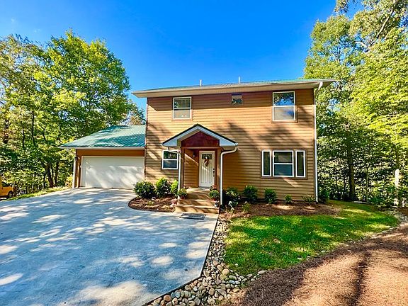 ONLY 10 MIN FROM TOWN W/ EASY ACCESS! You'll love the granite counter tops, SS appliances, walk in pantry, tiled bathrooms plus a luxurious garden tub and stand up shower in the primary suite, lots of closet space, engineered HW floors that make the house feel extra cozy as well as a gas log FP in the living room that can heat the whole house. There are 2 central heat & air units, one for each floor that help to keep this home's energy cost super efficient. Step out on the top balcony and you'll feel like you're in a tree house from the top floor of this beautiful home situated on a nice lot with lots of mature trees surrounding it that help maintain a private feeling to come home to. There is also a large porch just outside the french doors on the first floor that is perfect for cooking out and entertaining friends and family. Includes extra parcel 6596422269 with record of septic already in place & easy to access community water. Only a short, gentle, gravel road to drive before you get to the paved driveway. Large, finished 2 car garage w/ plenty of room to work in it. Live here FT or make it a great vacation rental. Light Restrictions. Owner is licensed NC Real Estate Broker.