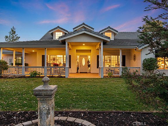 The impeccably maintained 3,022± sq. ft home was designed with a graceful and effortless open floor plan of 3 bedrooms, 2 bathrooms and office that could double as a room for weekend guests. The cozy living room features an impressive stone fireplace, vaulted ceilings, custom shelving unit and open concept into the dining room and kitchen. The kitchen seamlessly transitions into the formal dining room as well as breakfast nook with a Forno range, bar counter seating and custom backsplash. The primary suite stuns with natural light from the private access to the yard, walk-in closet and luxurious bathroom with tub, shower and vanity area. Designed to both entertain and relax, the lush resort style backyard includes a pool, spa with water feature and built-in BBQ area. Escape to your private garden area with raised garden beds and greenhouse to continue enjoying the unmatched views of the oak studded Paso Robles hills. Additionally, there are plans for a detached 1,197± sq. ft 2 Bed/2 Bath ADU. Nearly 2.35± acres of charm and solitude located in the Rancho Salinas gated community. Perfectly situated just minutes from downtown Paso Robles, award winning wineries and nearby amenities.