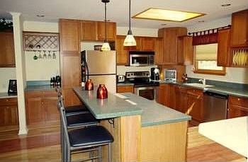 Simply stunning! Enjoy living luxuriously in this beautifully modern and updated home with excellent and desirable features including a fully finished lower level, a new roof, new heating & air conditioning, a private backyard, and a deluxe kitchen with all modern amenities. There is an open concept great room with beautiful flooring that is carried throughout the rest of the main level. The newly expanded kitchen is superb with stainless steel appliances, corian counters, a two-tiered center island, wood in-cased skylights, a breakfast nook, and a butler's pantry. There is an expanded office nook off of the kitchen. The formal dining area has a stately chair rail and modern lighting. The living room has a beautiful arched entrance and complimentary windows with Douglas blinds. The lower level has an incredible family room with a bar & tap system, a fireplace, and extra storage. Entertain in the backyard on the no-maintenance deck or relax in the sauna for 2! This home has it all!