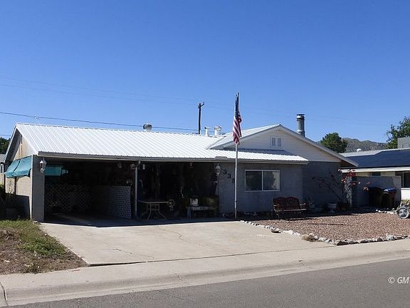 This beautiful home shows pride of ownership inside and out. Block home with a newer stucco finish. 3 bedrooms and 2 baths and coming in at 1358 square feet. Nice kitchen with electric cooktop, tons of cabinets and plenty of counter space. Living room has a nice fireplace to keep you warm on those cool winter nights. One bedroom was extended making a large bedroom but could easily be reverted back to a 4 bedroom home. Plenty of parking with a two car covered carport. Exterior laundry room. Metal roof installed just a couple years ago. Backyard is fully enclosed with a 6 foot block wall housing a work shop/shed with power, A/C and ceiling fan. For more storage, there is two additional metal sheds located in the backyard. Even the electric has been upgraded to 200 amp service. This home is sitting on a back lot with views of the mountains and gorgeous sunsets. Also, backyard has a gate that you could pull an extra toy up in it. This home is a must see and one of the nicest homes in Kearny.