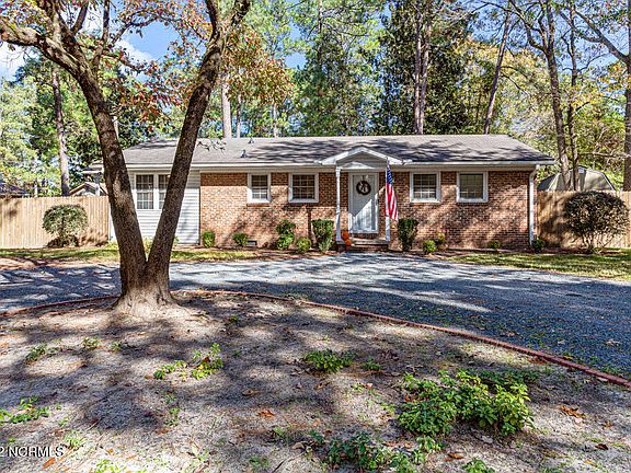 If you are looking for an updated, move in ready home affording the downtown Southern Pines lifestyle, do not miss this opportunity. Single level, impeccably maintained, bright and open inside with many recent updates making it move in ready! The exterior features large circle drive, level lot, 6 foot privacy fence in back, covered grill porch, paver patio entertaining area, metal storage building with a recently added, fully permitted and electrified storage building with additional loft storage. Home has Central Security System currently in place with exterior cameras and doorbell camera. Directly across the street from Memorial park with tennis, pickleball, volleyball, basketball and playgrounds. This property is a rare find in location, condition and price so don't delay in viewing!