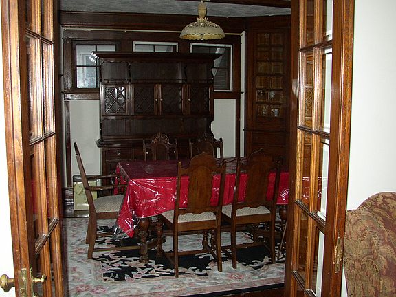 This fabulous historic Ilion Arts & Crafts style brick and stucco home with two car garage and private driveway features 3 levels of ample living space with a lower level 2 bedroom guest suite with separate outside entrance. The home features original woodwork throughout with built-in cabinets and the intricately beautiful custom inlaid parquet floors. Each room boasts a unique custom inlaid wood pattern including the foyer and base of the stairs. The Main floor features a custom granite eat-in kitchen with 24-inch blue pearl floors, matching countertops, a custom cobalt blue Kohler cast iron sink, a dishwasher, a Jennair downdraft cooktop and a built-in 30-inch double walloven. The main floor also features a fully enclosed brick and tile front porch with original solid oak door leading into entry vestibule and coat closet and with beveled glass and oak French doors leading into the formal living room with brick fireplace and custom wooden columns and built-in beveled glass and oak bookcases. Adjacent to the living room are a bonus guest room with a glass and oak french door, a den and a formal dining room with built in curio cabinet, french doors and custom oak leaf detailing on the walls. The second story of the house boasts a king-sized master bedroom suite complete with sitting room and walk-in cedar closet, two additional queen-sized bedrooms with walk-in closets, a fully tiled bathroom with beautiful clawfoot soaking tub and custom cherry and granite vanity and a full walk-up attic. The lower level guest suite features a private entrance and a beautiful open floorplan with a living room, dining area, bar, kitchen, bathroom and 2 bedrooms, including a bedroom with a walk-in closet and a custom brick wall. The home also features 50 new vinyl windows, a newer roof, heating and electrical system, plumbing and insulation in all exterior walls. The property also houses a two car garage with a mechanics pit. The wrap around driveway has access on Main Street and on Barringer Road and features a covered carport accessing the main entrance to the house. All this with affordable Ilion municipal power. A must see property...