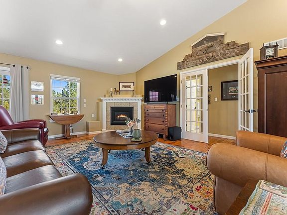 This stunning 3-bedroom, 2-bathroom home with a 3-car attached garage is located on 1.72 acres in the highly desirable Liberty Point area. Step inside through inviting French doors to an open floor plan filled with natural sunlight, vaulted ceilings, and beautiful hardwood flooring throughout. The spacious living room features a cozy gas fireplace, while the kitchen is designed for both function and style with a gas range oven, Corian countertops, abundant cabinetry, and a convenient breakfast bar. The primary suite offers a relaxing retreat with granite countertops, a large walk-in tiled shower, and a walk-in closet. A split-bedroom layout provides privacy with two additional bedrooms and a full bathroom. Additional highlights include a main-level laundry room with a sink, a full unfinished walk-out basement ready for your personal touch, and a newer furnace (only 2 years old). Enjoy the outdoors with a fully fenced and landscaped backyard, complete with an open patio perfect for entertaining. All this plus breathtaking mountain and lake views make this property a true gem!