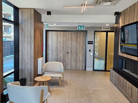Welcome to Oakvillage by Minto Modern Luxury in the Heart of Oakville. Discover unmatched convenience and contemporary living in this spacious 1 + Den suite in Oakville's highly sought-after community at Dundas & Trafalgar. Perfect for first-time buyers, investors, or downsizers, this stylish condo offers a thoughtfully designed layout with soaring 9 ceilings, floor-to-ceiling windows, and upgraded wide-plank hardwood flooring throughout. The open-concept living, dining, and kitchen areas are perfect for entertaining. A spacious kitchen features premium granite countertops, full-size stainless steel appliances and ample cabinetry. Step out to the balcony to enjoy panoramic views. The bright primary bedroom includes a walk-in closet, while the versatile den is ideal for a home office, bedroom, play area or guest space. Additional highlights include full-size in-suite laundry, a 4-piece monitoring. Residents enjoy premium amenities such as a fitness centre, party room, BBQ area, bike storage, visitor parking and more! One underground parking space and high-speed internet are included in the condo fees. Experience city living surrounded by nature, with over 200 km of walking trails, parks, and greenspaces right at your doorstep.