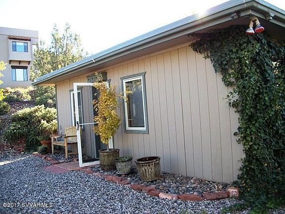 If you're looking for the cutest, little place in West Sedona, here you go! Cottage style, site built home on an elevated lot with views. Nicely finished interior, great patio and well landscaped yard. Plenty of room to remodel or expand. The owners may consider ''Seller Carry-back Financing'' to qualified potential purchasers! Tenant occupied so please call your agent or the listing office to schedule a showing.