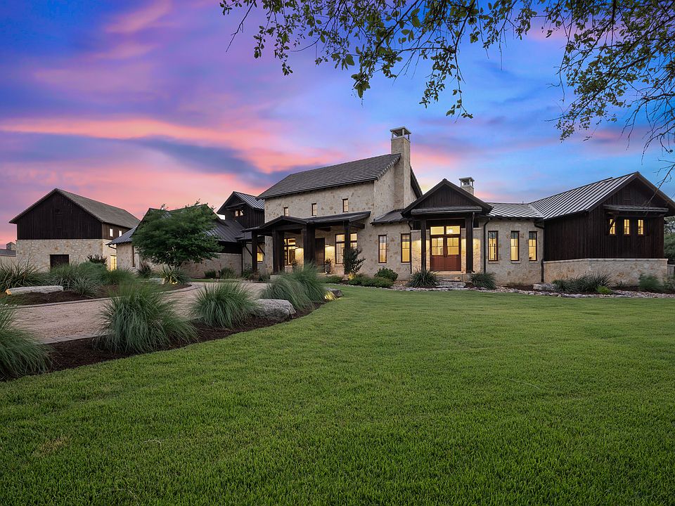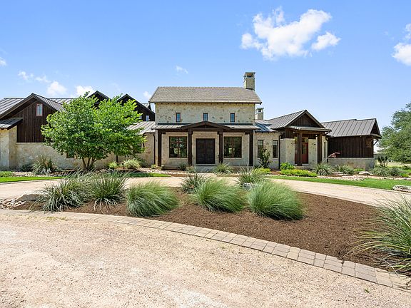 Live the pastoral equestrian lifestyle within the city limits in this luxurious Hill Country estate farmhouse. Designed by award-winning Design Visions of Austin and built by John Siemering Homes, the home is crafted of native limestone and red cedar, paying homage to traditional Texas ranch homes. Stepping inside the great room you will be struck with the volume of the space; soaring ceilings are anchored by cedar trusses and emphasized by a floor-to-ceiling limestone fireplace. Gleaming gold- and silver-leaf chandeliers add an elegant counterpoint to the organic elements of wood and stone. The showplace kitchen centers around a luxury La Canche range and features an oversized granite island that is both a cook's and entertainer's dream. The great room opens out to the covered patio to allow for guests to flow from inside to the covered terrace, pool and lawn beyond. Multiple Options to Entertain and Relax A large game room also opens to the patio and features a wet bar for convenient refreshments. This space accesses the second level which hosts three en-suite bedrooms and another game room; the entire wing can be closed off allowing kids their own space to play, host friends and relax. Secluded on the other side of the house, the luxurious main-floor primary suite opens out to the screen porch where you can enjoy a cup of coffee in the morning or nightcap enjoying a cool breeze. A sumptuous bath includes a curved, oversized shower and soaking tub with a view. Adjacent, a spacious office offers a peaceful place to work or can be used as a gym or playroom. Rural Serenity with Nearby Amenities While just minutes from area amenities, shopping and restaurants, you will feel miles from the city on almost four oak-dotted acres. Equestrians will appreciate being walking distance to ATX Equine stables and everyone will enjoy the amenities at the nearby Polo Tennis Club. On the other hand, you may never want to leave your property with over 1,400 square feet of outdoor living to enjoy. The beautiful stone terrace features an outdoor kitchen where you can BBQ for all your friends and family as they splash in the resort-worthy pool or play on the enclosed sport court. A breezy screened porch with a two-sided fireplace provides another cozy spot to sip a cocktail and enjoy the country air. This is the ultimate in country living with all the conveniences nearby. Additional Notable Features: Property/Exterior * 20 minutes to Austin * Walk to ATX Equine, AESA Prep and Polo Tennis and Fitness * Lower Hays County taxes and acclaimed Dripping Springs schools * 100-foot setback * Pool by Elite Pools of Dripping Springs * 1,595 square-foot barn with electrical; outfitted as a sport court with eight bays * Three-car attached garage * Six additional parking spots in the seven-bay barn * Fenced yard * Well-fed; rainwater collection system on the barn (no water bill) * Mosquito Nix service * Outdoor kitchen includes a gas grill and sink * Patio features a two-sided fireplace, two televisions, electric shades, surround sound * Firepit * Irrigation system Interior * Kitchen features La Canche, Bosch and SubZero appliances, appliance lifts, two dishwashers and custom vent hood * Walk-in pantry * Oversized mud room with second refrigerator, planning center and storage * Vintage St. Louis brick in mud room and laundry * Guest suite features extra-wide doors and flat thresholds for accessibility * Custom storage in closets * All bedrooms include en-suite baths * Three AC units, two water heaters * Laundry chute to the Utility room from the upstairs guest rooms * Lodestar chandeliers in great room * Beamed ceilings in kitchen and bedroom * Shiplap accents throughout * No Carpet- Hardwood, Stone and Tile throughout * Generous Primary closet includes custom storage and dresser