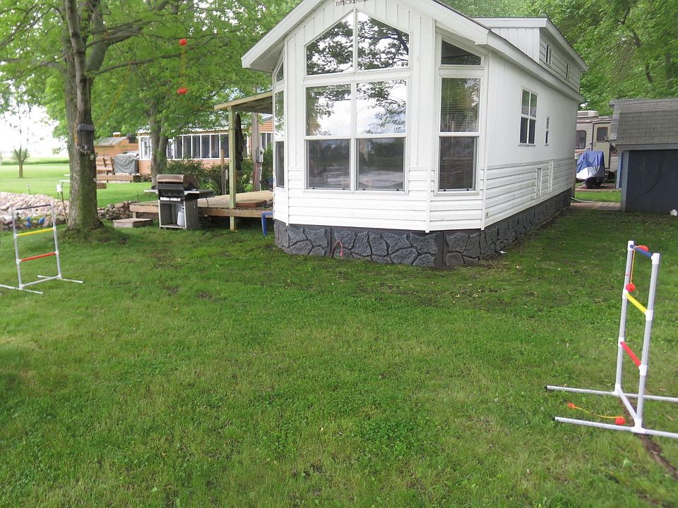 What a great opportunity to have your own home on the lake! This home has amazing curb appeal and sits right on the water, what more could you ask for! You have a great view from inside or sit on the large deck and relax the day away. This home offers a nice kitchen, dining area, living room with beautiful windows, a full bath & stairs that lead to the upper level bedrooms. There is a shed that has the washer/dryer and an extra stool for extra convenience. There are 2 lots here so there is plenty of space for outdoor activities including enjoying the fire pit, yard games and taking in the well done landscaping.