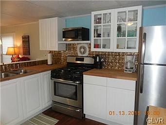 View website: http://3350airportroad63.IsNowForSale.com - Beautifully remodeled home in Saylor's Park - Catasaqua Schools, economical living. Don't miss the opportunity to own a home on the nicest lot in the park. Minutes from everything, but tucked away at the end of the cul-de-sac. This home has been lovingly redone from top to bottom with quality construction materials. Beautiful flooring throughout. New Harvey windows. Stainless steel appliances, Ikea cabinets and gorgeous butcher block counter tops. Open Concept living/dining/kitchen. Light and bright. Only $400 monthly lot rent, and taxes under $100 a year. Stress free living.