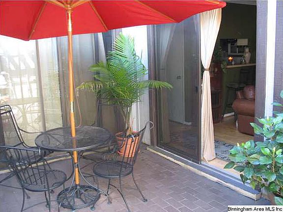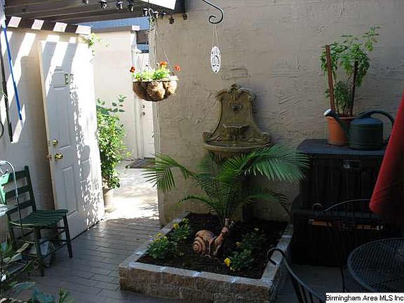 No Steps to access this home. Remodeled with updated hardwood flooring, corian countertops, new backsplash in kitchen, updated cabinetry in bathroom & remodeled paver tiled patio with fountain. You should see it in bloom in the spring. This condo has it's own private patio, a spacious greatroom w/pass-thru window into Kitchen which can double as a breakfast bar or bistro area for dining. There is a built-in desk area between the bedroom & bathroom for a computer area or dressing table. This one is really nice and move-in ready. Condo only a few steps to the pool, laundry facility and super convenient to downtown, entertainment districts, UAB, Samford & local medical facilities. The association remodeled the pool & laundry areas in recent years so new property assessments are anticipated. A must see and a great buy. Call to see today.