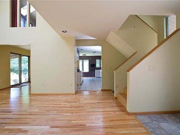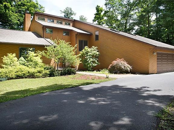 Spacious 3 level Contemporary sits on a beautiful wooded lot, adjacent to the Skaneateles Country Club golf course, minutes to the village. The 3 bedroom, 3 full bath home offers 3,500+ square feet on 3 levels w/hardwood flooring, cathedral ceilings & numerous updates. The 1st floor boast an open floor plan, family room w/2 story ceiling & stone fireplace, eat-in kitchen, dining room, 2 bedrooms & laundry room. The large master suite, located on the 2nd floor, boasts a loft/office area, sliders to private deck, master bathroom, walk-in closet and finished bonus area off of the closet. The lower walk out has a full bath, family room, woodburning stove, billiards area, 2 additional bonus areas and new sliders to the backyard.