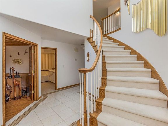 Are you looking for style and class in your next home? How about a circle drive? This home has it all Custom built Sattler Home with grand open entry welcomes you to this upscale home with ceramic tile floors and accented tile border. Updated Kitchen with Granite counters, stainless steel appliances and island. Great room with wall of windows, gas fireplace with built in shelves. Home office features wood flooring, custom bookcases, wainscoting and oak ceiling. Oversized master bedroom with room for sitting chairs, walk in closet, ensuite bathroom with 2 sinks, whirlpool tub and separate shower. Main floor full bathroom with 2nd whirlpool tub Rainbird Controlled irrigation system. Heated garage. Lower level is unfinished with lots of potential for you.