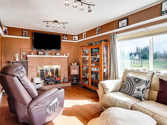 Cute mid-century farmhouse on 4.3 mostly flat usable acres with beautiful views! Fully fenced and some cross fenced. Cozy living room with woodstove and laminate flooring, also a nice size family room with wood burning fireplace, laminate flooring, vinyl siding and windows. Shop with power, concrete floor, covered storage area for implement, cars, boats, etc. Property comes with ADU 1974 mobile home. Property being sold as is while sellers downsize. Cash only