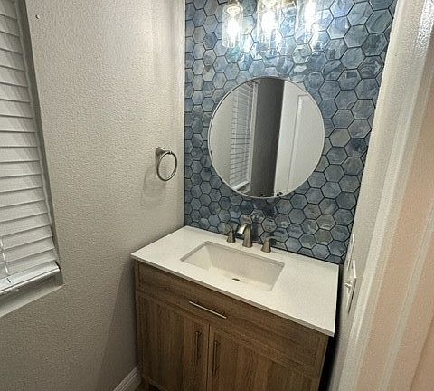 NEWLY REMODELED 4 bed/2.5 bath two story home in a Gated Community in NLV! Two car attached garage. NEW LUXURY VINYL PLANKS/NEW CARPET THROUGHOUT! Front formal living room. Separate family room. Two-way fireplace between living and family rooms! Dining area with stunning accent wall! Kitchen has granite counters, stainless steel appliances, a breakfast bar, pantry, and a breakfast nook! Updated bathrooms with tile accents! All bedrooms are located upstairs. Ceiling fans! Large master bedroom has a walk-in closet. Master bath has two separate sinks and a separate tub and shower! Has a backyard with a covered patio!