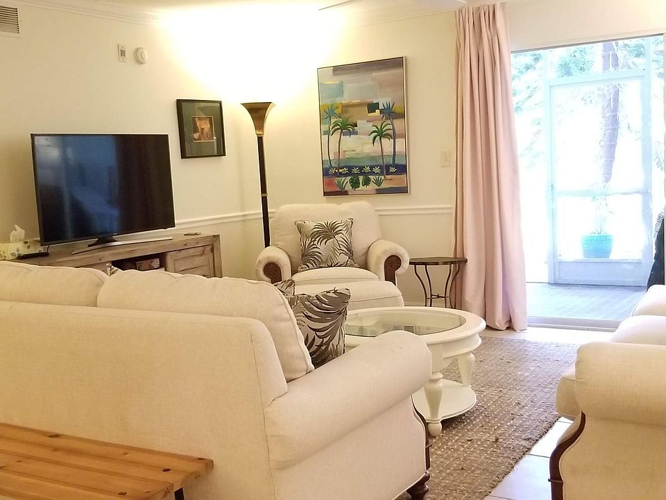 This cozy 2 bedroom, 2 bath is 1122 sq.ft. under air, screened in lanai and outdoor patio has a lot to offer. Prime location close to the heart of Downtown Sarasota and steps away from the North Bridge to Siesta Key. You will be within walking distance from Florida's favorite grocery store, Publix, as well as Southgate Mall, Cine Bistro, local restaurants, bars, fine dining, shopping and Southside Elementary. The apartment is not only tastefully furnished, but also sunny and bright. For long term travelers, there is a full Kitchen with granite counter tops, stainless steel appliances, and all dishes/utensils. The spacious open floor plan has a dining/ living area and master bedroom with sliding doors to a screened in lanai and patio. Master bedroom with a king size bed, queen for the guest room with bunk beds for kids. Tile floors throughout, A/C, and ceiling fans to keep you cool on hot Florida nights. There is a community pool and gym in the complex. Electric and cable not included. No smoking.