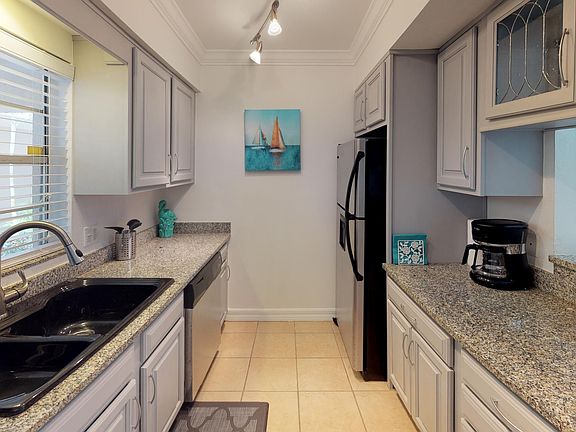 Beautifully and comfortably decorated for long term travelers that want an easy stay. (Check out our virtual tour to see!) This condo is West of Tamiami Trail, meaning it's much closer to the Bay and near all Sarasota has to offer. This is a 1 bedroom, 1 bath with 751 sqft. under air, a screened in lanai (keeps out the mosquitoes!), and a spectacular outdoor living space with a maintenance free yard. Prime location close to the heart of Downtown Sarasota and steps away from the North Bridge to Siesta Key. You will be walking distance from Florida's favorite grocery store, Publix, as well as Southgate Mall, Cine Bistro, local restaurants, bars, fine dining, shopping and Southside Elementary. The condo is not only tastefully furnished, but also sunny and bright. For long term travelers, there is a full Kitchen with granite counter tops, stainless steel appliances, and all dishes/utensils. The spacious open floor plan has a dining and living room with sliding doors that open to a screened in lanai and to a gorgeous view of the private, quiet garden. Tile floors throughout, AC, and ceiling fans to keep you cool on hot Florida nights. Everything is freshly painted and remodeled with updated bathrooms. The master bedroom has direct access to garden and outdoors. There is a community pool and gym - saves you on travel time & subscriptions! Questions or Schedule Your Stay: Virtual Tour: 3 Months minimum stay starting January 1st. 2022-March 2022 Ask for special rates for 6 months or more. To make your stay even easier: Wifi, Cable, Water, sewer, trash and pest control included in rent. This condo will accommodate up to 4 people, most comfortable for a couple. Pet Friendly, please call for more details. Calendar months only will be considered. Questions or Schedule Your Stay: Please View Our Virtual Tour: