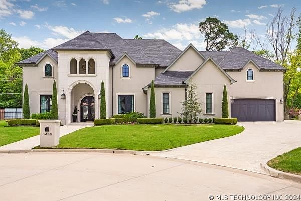 Introducing luxury living in the coveted gated Oak Leaf Estates, just moments from Tulsa Hills Shopping and The Oaks Country Club. Built in 2020, this exquisite single-level home spans 3940 square feet and exudes elegance at every corner. Prepare to be enchanted as you approach the residence, greeted by the 20-foot-high ceilings and distinctive light fixtures. Marvel at the beautiful tile floors guiding you through spacious rooms flooded with natural light. The heart of the home is the chef's dream kitchen, w/a galley sink and all the accessories, a sprawling center island seating 8, and stunning quartz countertops. All top-of-the-line appliances. The family room is modern comfort, enhanced by a charming electric fireplace and built-in bookshelves, overlooking the lush outdoor oasis featuring a golf green, pool area, and an outdoor fireplace and kitchen—ideal for hosting memorable gatherings. Retreat to the primary bedroom sanctuary, offering high ceilings and sitting area, and a luxurious en-suite bathroom with separate vanities & water closets, a grand shower with dual entrances, and 2 oversized closets leading to the laundry room complete with ample storage and a sink.
