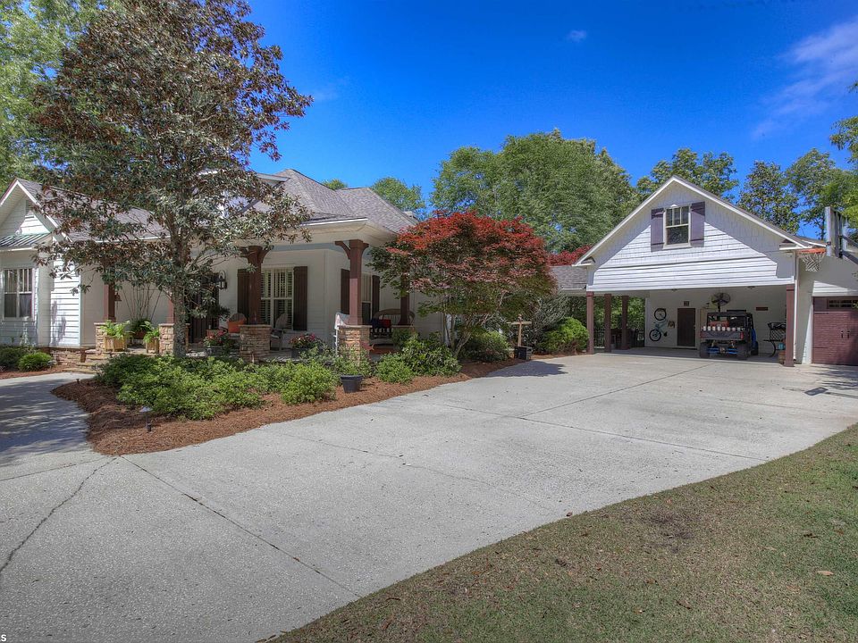 Live the dream in the exclusive gated golf community of Steelwood. Imagine yourself fishing in the private 250-acre lake and playing golf in the afternoon on the Jerry Pate-designed championship 18 Hole Golf Course. This well-landscaped custom-built home features granite countertops, chef's kitchen with stainless steel appliances, wood-burning fireplaces, beautiful wide pine hardwood floors, large open floorplan, and a large and spacious screened porch. The primary bath was updated in 2020 with a marble shower known as a "wet room" which includes a claw foot bath and has radiant heating in the floor. A new roof was replaced to fortified standards in 2021, and also features a whole-house generator. The guest room over the carport features a guest area with a private bath and a home office area. The landscaping features every tree that is found at Augusta National Golf Club. Don't let this unique property get away. Termite Bond with Arrow is transferrable.