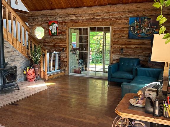storybook beautiful log home for sale with additional small house with income on 20 acres! panoramic views and wildlife. Bring your toys and enjoy peaceful living! have farm animals? thats ok too! this house features a bedroom on each level and convienent entrances to the home allowing you to spread out or just relax with a book and your amazing view of the county side.
