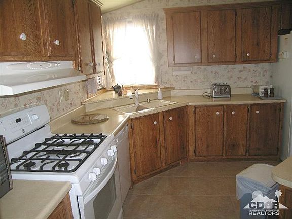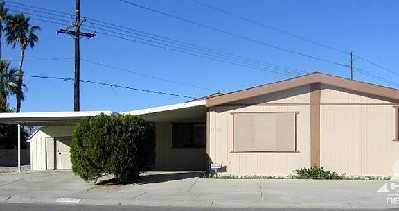 This 1987 newly painted exterior Skyline Home sits on a very large corner lot with plenty of room to add a garage or nice outdoor patio area. This single owner home has been well cared for and offers just over 1600 square feet, 3 bedrooms and 2 full baths, cathedral ceilings and sheetrock walls. The 4 ton-13 Seer A/C, water heater and furnace are all 2006; New larger electrical breaker box in 2008, new gas lines with individual shut-offs for each appliance and earthquake bracing. There is a newer 2012 stove and exhaust fan and a 2008 3-door-22 cu. ft. refrigerator and 2006 dishwasher plus new Granite vanity tops and new faucets in both bathrooms. Come and Enjoy unlimited golf for two deeded owners on two courses, plus swimming pools, hot tubs, tennis courts, shuffleboard and Clubhouse with restaurant & bar for one monthly maintenance fee. See all the improvements at Tri Palm Estates & Country Club you will be impressed.