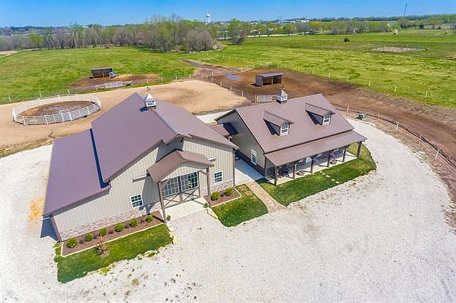 HORSE LOVERS WILL FALL IN LOVE WITH THIS QUALITY CONSTRUCTED EQUESTRIAN FACILITY! The moment you drive into this estate, you will understand all the upgrades from fencing to barn and home to working arena, turnout pastures, dry lot, circle drive for easily hauling trailers into and out of the property. The barn has textured concrete aisleway, office, loft storage area, tack room, attached fans, stall lighting, floor mats, feed room, insulated ceiling, two oversized drive-through doors to accommodate the largest horse trailer, large lined stalls with gorgeous stall fronts including built-in hay feeders, grain feeders and water; lean-to with hay storage, tractor and implement storage, and room for pallets of shavings. Owner is adding a wash rack with built-in drain, water and lighting. Step into this easily maintained home with tasteful decor and comfortable rooms, vaulted ceiling, built-in cabinetry, exquisite kitchen cabinetry, pantry, quartz countertops and so much more. Barn is 36 x 48 with an attached 16 x 48 lean to; interior has (4) 12 x 12 custom stalls with fans and lights on timers; Stamped concrete floors throughout; 12 by 20 workshop or storage room; 12 x 6 feed room; 12 x 12 tack room and 12 x 10 wash rack; 12 x 48 storage loft inside the barn. Outside has 5 acre fenced pasture with a 10 x 20 lean to; 60 x 100 turnout pen; and (2) 2 acre turnouts; one of the 2 acre turnouts has a 10 x 20 lean to; outdoor arena is 70 x 150.This facility is designed with the serious horse lover in mind. Maintenance is thoughtfully planned for easy care which gives you more time to invest in your show horses, breeding program, or training. 2021-07-09